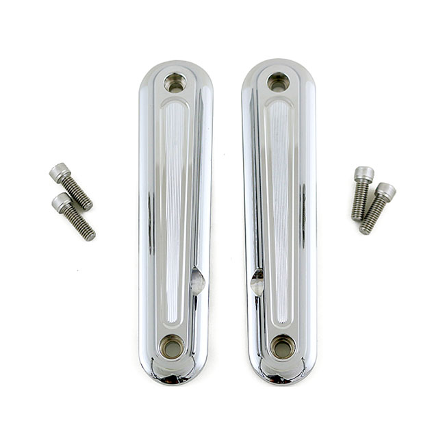 Chrome. With DLR running lights. CNC machined from billet aluminum in a Fred Kodling design. Fork mounted on models with Batwing fairings.
